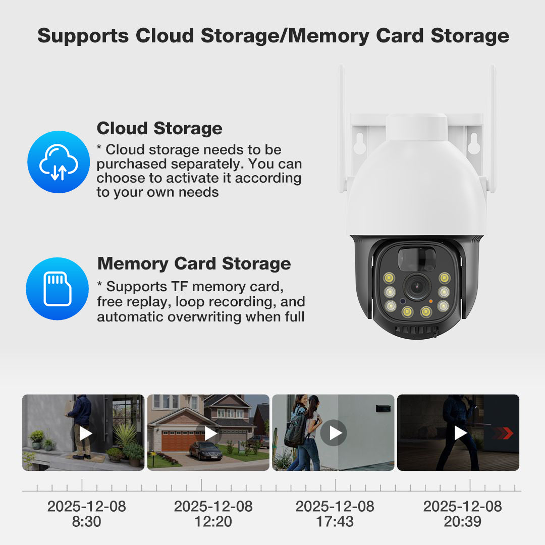 - Flexible storage options. Remote monitoring cameras support up to 128GB of MicroSD cards (not included), as well as cloud storage.