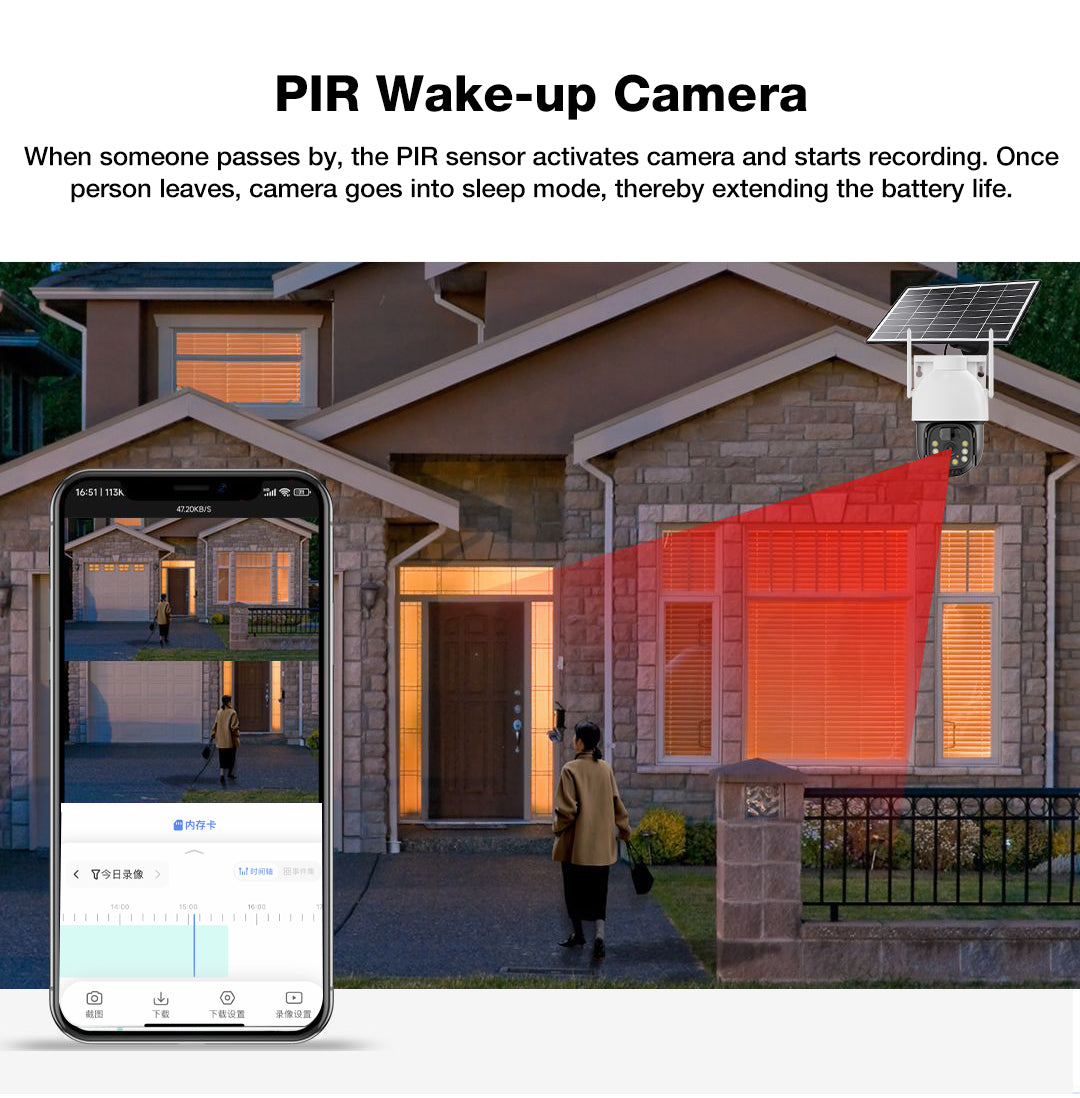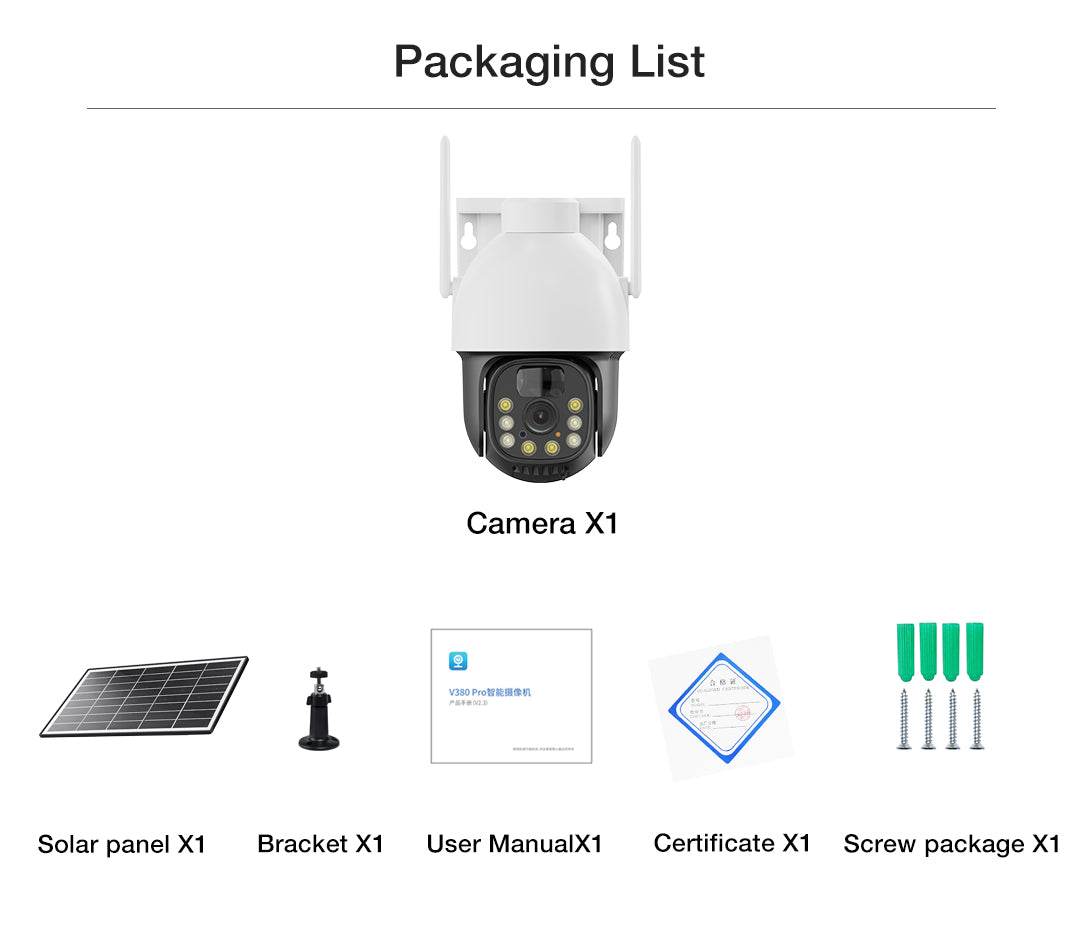 - 100% wireless & solar-powered. The Owenfy outdoor camera uses 2.4GHz WiFi, is charged by a 7W solar photovoltaic panel, and has an internal large-capacity battery. It provides long-lasting power after each charge, eliminating the need to worry about the weather and ensuring 100% wireless security.
