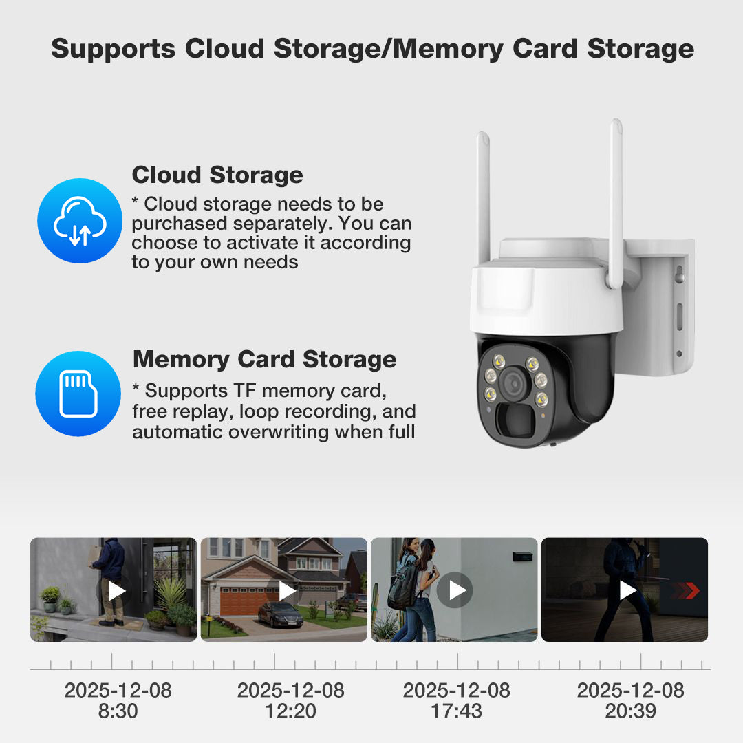- Flexible storage options. Remote monitoring cameras support up to 128GB of MicroSD cards (not included), as well as cloud storage.