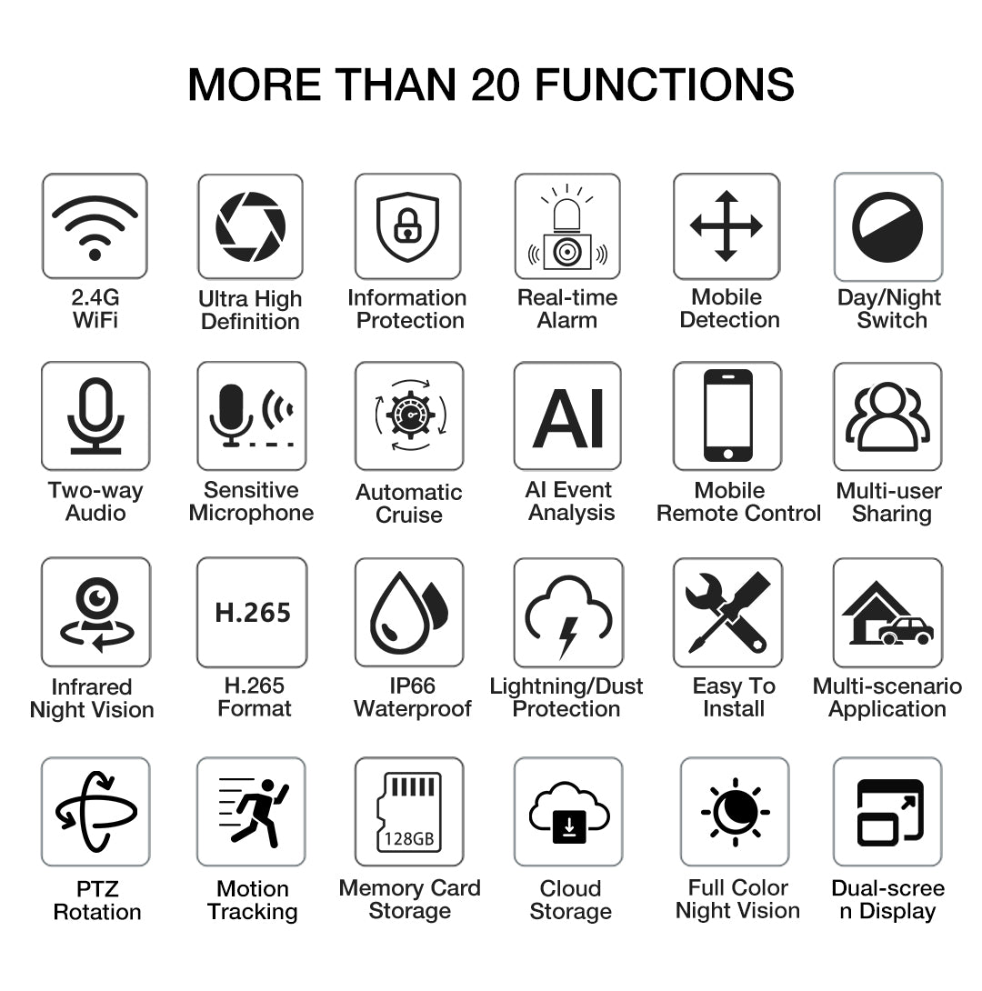 - 3 million pixels and full-color night vision. 3MP high-definition lens, which can provide you with ultra-clear color images. Built-in spotlight, enabling bright and clear full-color images even in the dark night.